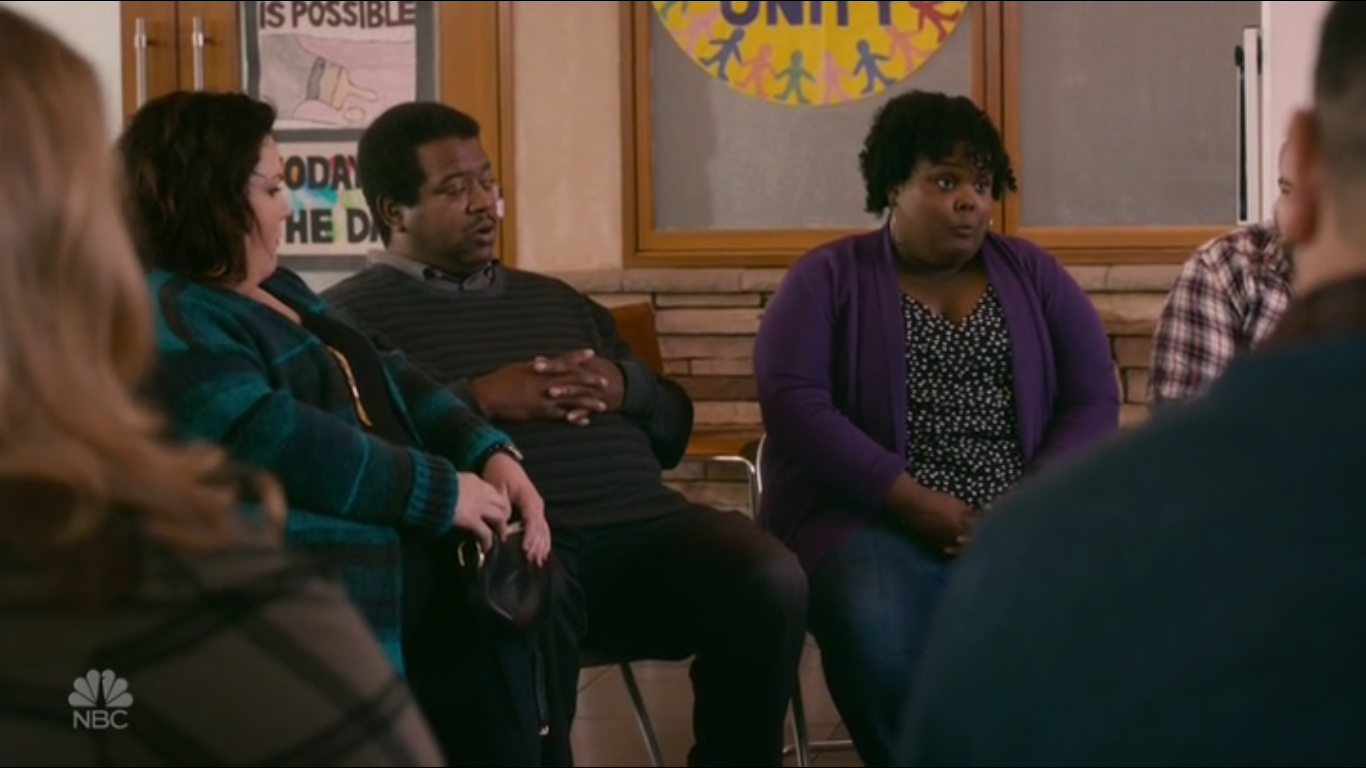 It doesn't look like that here, but it felt like the plane was about to crash (like I don't hate flying enough)- yeah so this 'near death' experience leads to Kate deciding to have weight loss surgery. Although no-one cared when she said it because Randall found out that... his mum has known about his bio dad for like ever! Trouuubleee.